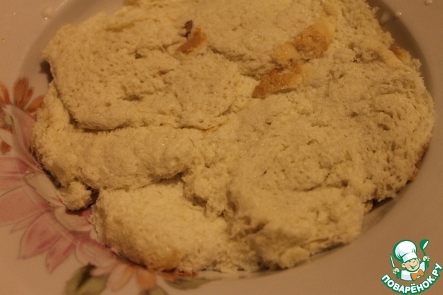 Батон освободить от корки, нарезать тонкими ломтиками и залить молоком (вместо молока можно использовать сливки). Пропитаную булочку выложить в форму, смазанную маслом (булку отжимать не надо).