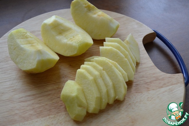 Яблоко почистим. Удалим сердцевину и нарежем на 4 части.
