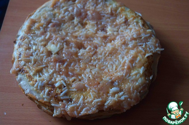 Каждый блинчик смазываем также небольшим количеством фарша.