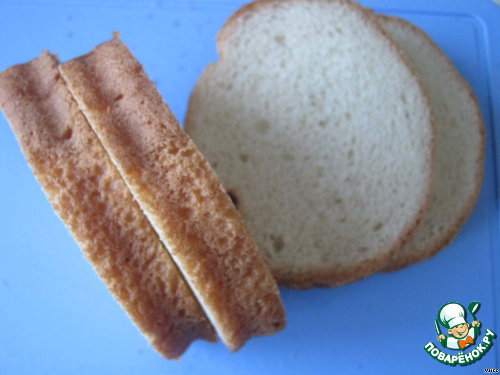 Беру белый тостовый хлеб. Можно брать любой хлеб, булочки для гамбургеров, батон.