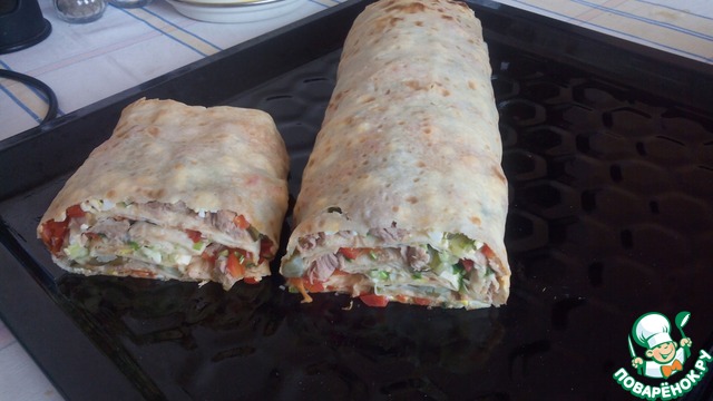 | Название "Шведская семья" не потому, что я подглядел этот рецепт в Швеции (там я никогда не был), а потому, что это блюдо формируется из 3х основных слоев, укладывающихся друг на друга (лаваш+начинка+лаваш). Неплохой, сытный, сочный перекус в любое время дня и ночи. |