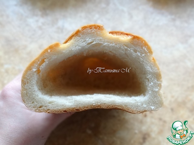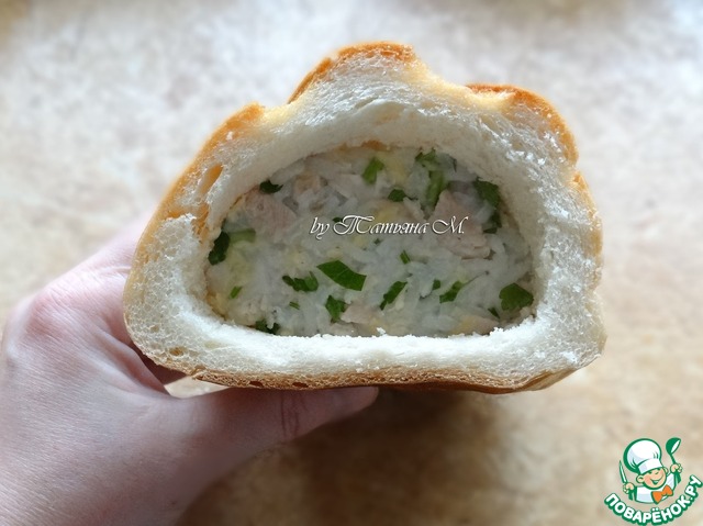 Из батона вынуть мякишь, оставляя стенки в 1,5 см;