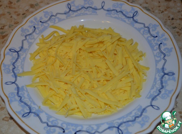 Выкладываем на тесто, по кругу, подушку из натёртого сыра.
