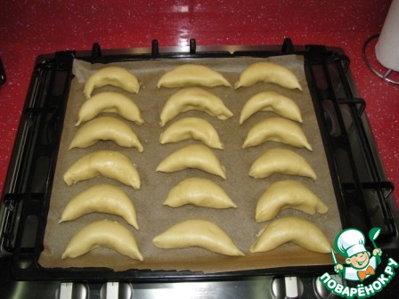 Разогреваем духовку до 190*, застилаем пергаментной бумагой, и выкладываем наши красивые пирожки.