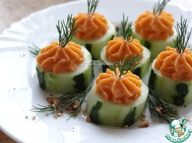 Лучше огурцы фаршировать непосредственно перед подачей на стол, чтобы они не успели дать лишнего сока и можно подавать к столу!