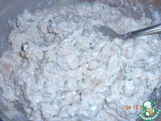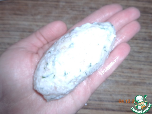 Делаем фарш для наших котлет. Трем на терке лук и добавляем в мясной фарш. Туда же соль, перец, творог и резанный укроп. Хорошенько перемешиваем и добавляем немного теплой воды (консистенция должна получиться немного вязкой ).