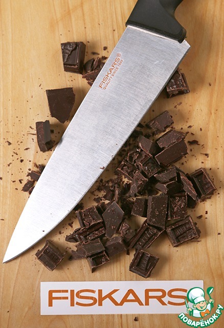 1. Нам понадобится качественный темный шоколад без добавок. Режем его кубиками помельче.