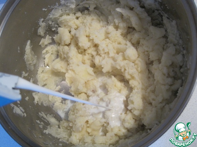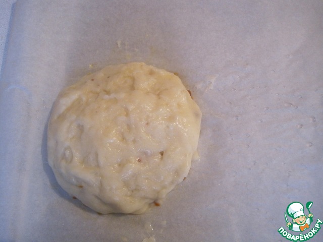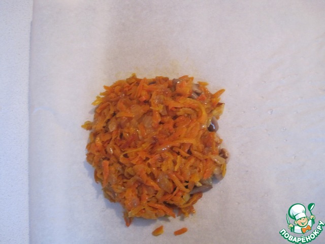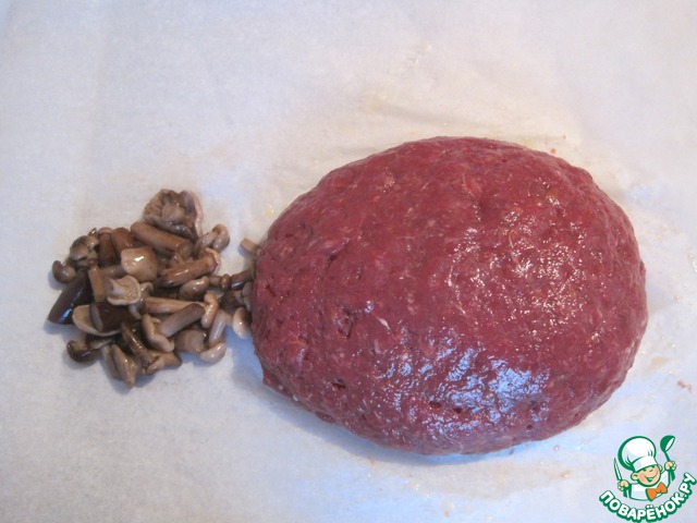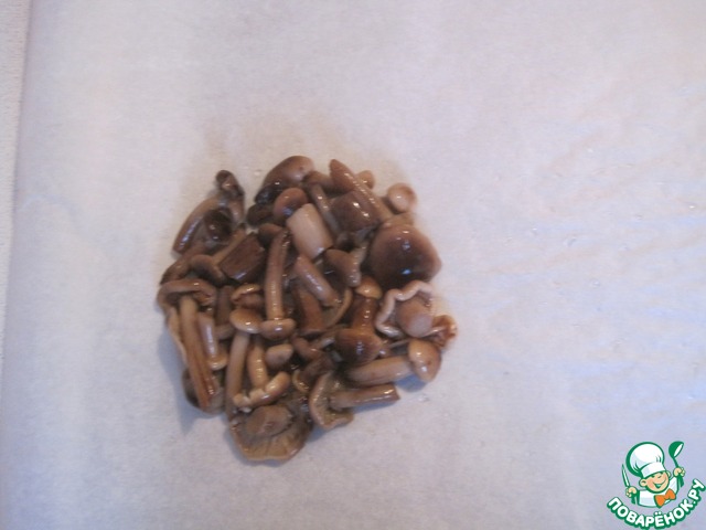 Собираем запеканку. 1 слой грибы (у меня опята маринованные) кладем в виде круга или овала.