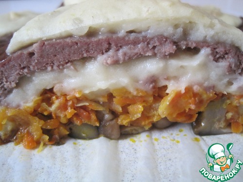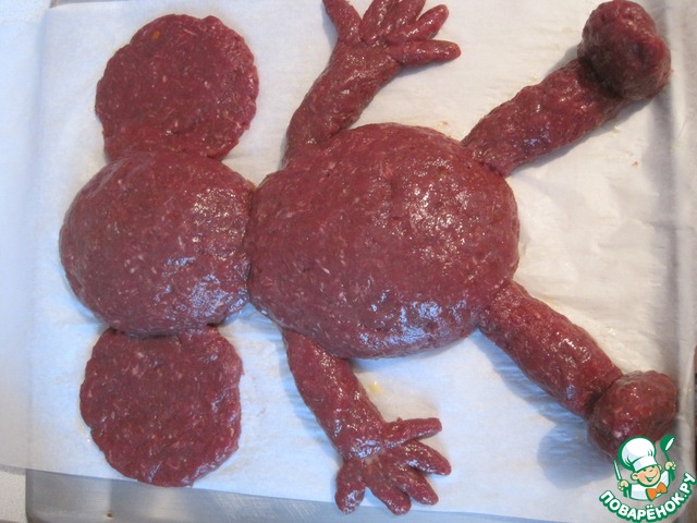 4 слой фарш говяжий. Получилось туловище обезьяны.