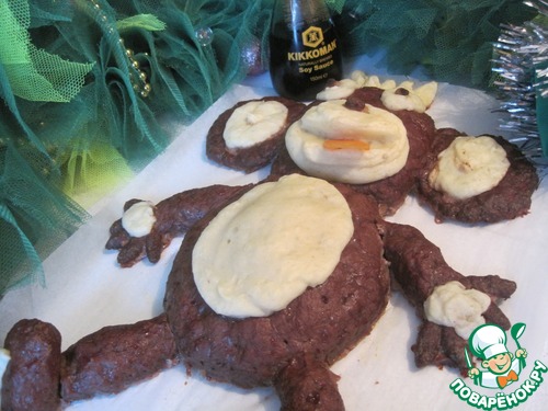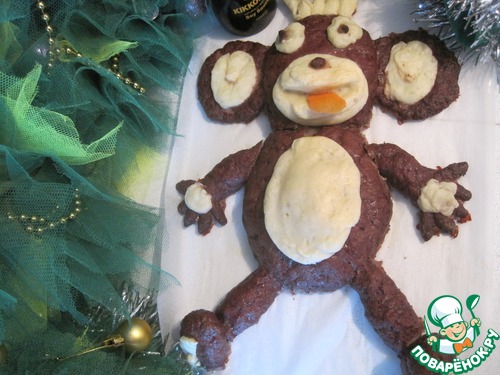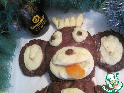 | Очень вкусная, сочная запеканка из мяса, картофельного пюре, грибов и овощей, которых очень много на сайте. Я решила обычную запеканку оформить в виде обезьяны, которая может стать прекрасным новогодним горячим блюдом. |
