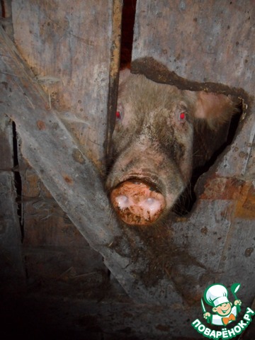 3. Укладываем слой свежего сала (мы брали сало наисвежайшее т. к. родители держат поросят.).