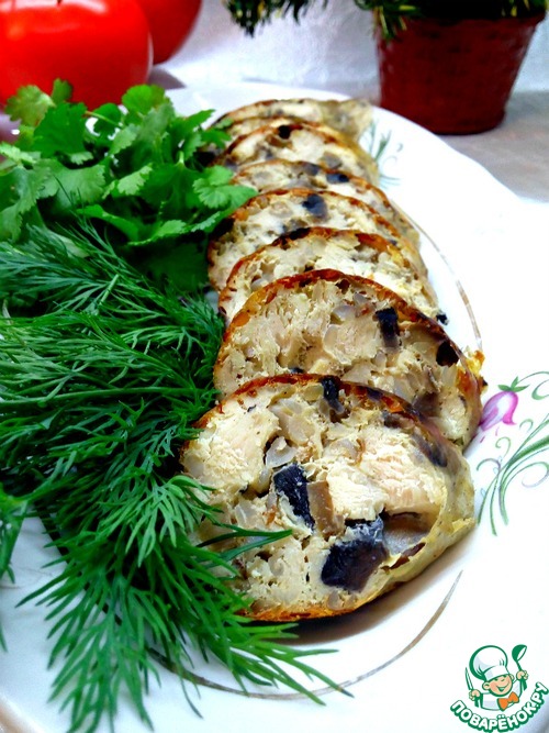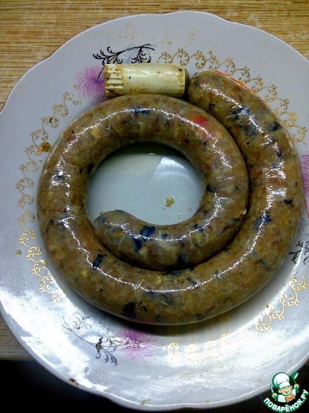 Куриная домашняя колбаса с гречкой и грибами
