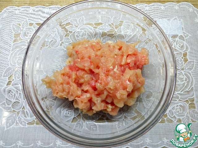 Куриное филе нарезать мелким кубиком.
