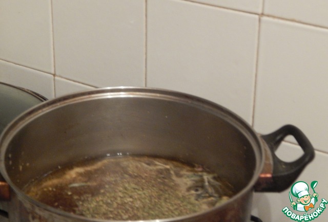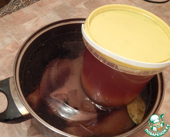 А после того как рассол остыл, выдавила в рассол сок из лимона (если не любите курицу с лимоном, то пропустите этот момент)