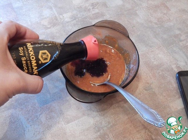 Для приготовления взят соевый соус ТМ "Киккоман"