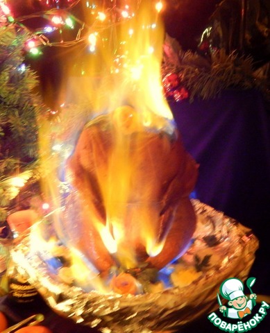 | Курица фламбе, или фламбированная курица - очень вкусное и красивое блюдо. Я хочу предложить вам приготовление курицы в три этапа-они все очень просты но результат ошеломительный. Так же как и яркая подача, которая не оставит ваших гостей равнодушными. Новый год-это яркий праздник, окрашенный в цвета огней и феерверков, горящих свечей и бенгальских огней, это тёплый праздник с яркими акцентами. И в него отлично вписывается курица фламбе. Итак-мы сперва замочим курицу в рассоле, потом ещё промаринуем и только после этого подвергнем фламбированию! Начинаем? |
