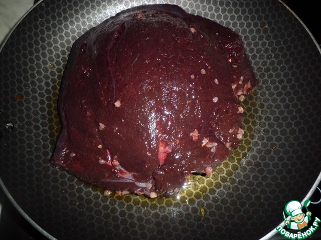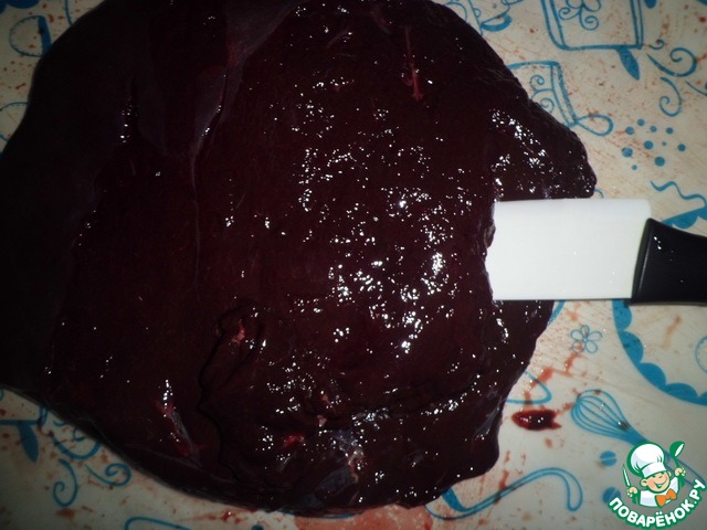 Печень промываем, очищаем и делаем внутренний разрез на всю длину и ширину, получается карман, который потом мы будем фаршировать.