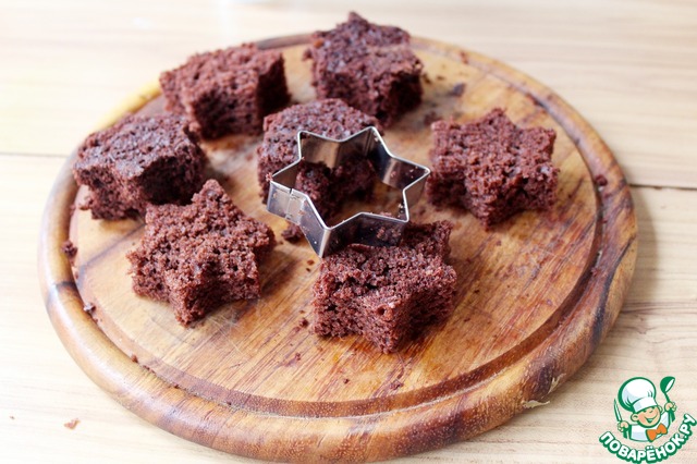 По центру выложит плотно друг другу вырезанные шоколадные звездочки, немного придавливая их утапливая в тесте (но не сильно!! а только слегка надавливайте!!!).