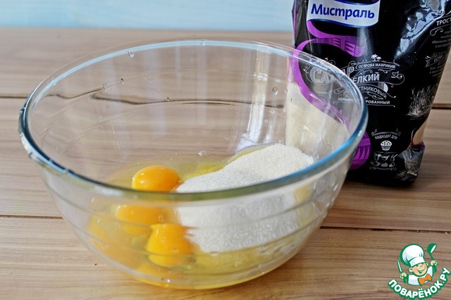 Миксером взбить яйца с ванильным сахаром и сахаром тростниковым ТМ Мистраль.