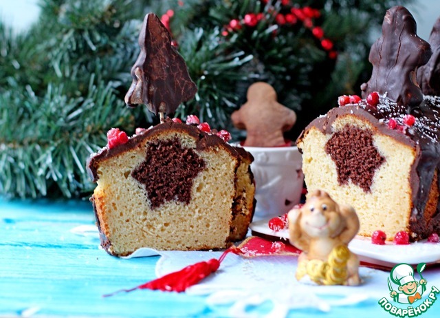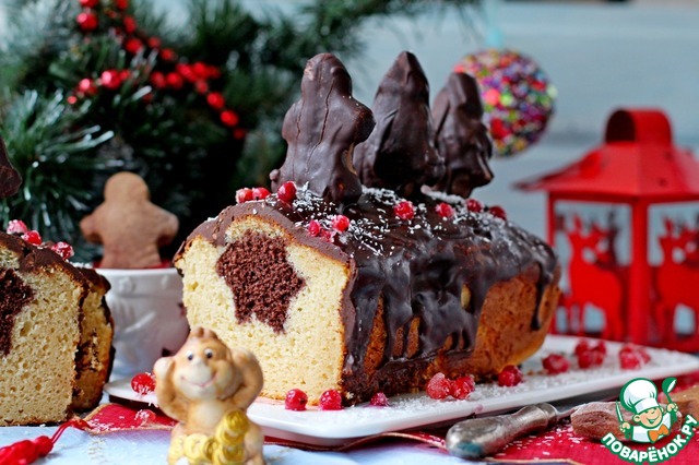 | Предлагаю вашему вниманию один из вариантов Рождественских кексов. Этот кекс не из серий: пряных, с орехами и сухофруктов. Это совсем иной кекс но тем не менее он подходит именно для Нового года или Рождества. А все дело именно в оформление кекса!!! Вся его " прелесть" в серединке кекса, в моем варианте это испеченный шоколадный что то очень похоже на брауни, кекс и вырезан в форме звездочек. здесь вариаций может быть много... это могут быть елочки, человечки, сердечки... на ваш выбор. Ну и сам кекс, очень нежный и вкусный! Я его приготовила на основе творожной рикотты, можно смело заменить на творог (желательно сухой) или на любой другой творожной сыр. И конечно же, завершающим моментом это толстый толстый слой шоколада... Ну и для украшения я использовала имбирные пряники которые тоже щедро полила шоколадом. Можно в качестве украшения использовать те же "звездочки" из шоколадного теста или любые другие украшения.. Дайте волю своей фантазии и вы получите из обычных подручных продуктов очень нарядный и праздничный кекс!!! |