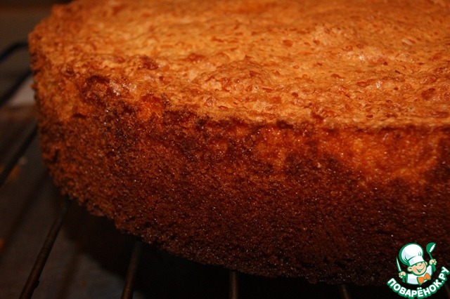 Остудить бисквит в форме. Освободить от формы осторожно подрезав по кругу края. Дать бисквиту созреть в течении 7-10 часов