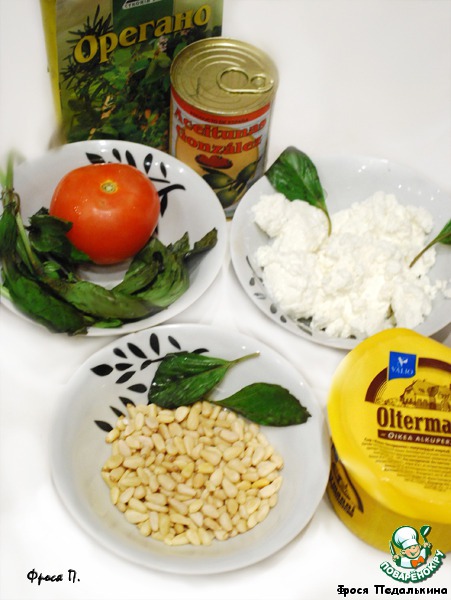 В каждую начинку добавляем по 2 ч.л. творога. Чтобы совсем по-итальянски было, хорошо бы использовать сыр Рикотта, но, признаюсь, он не частый гость в моем холодильнике. А вот пачка творога в морозилке найдется всегда.