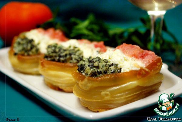 | Понравилось мне делать этнические тарталетки! Сегодня черед обожаемой Италии, которая славится конечно же пастой, песто, томатами, оливками, ароматным базиликом и орегано.. Все есть у меня! Идею тарталеток из спагетти навеял рецепт пирога Тимбаль. Продолжение следует.. На конкурс "Королева фуршета" |