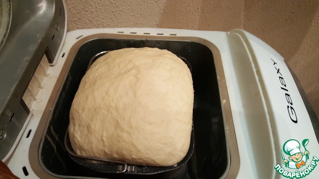 Замесить тесто. Моя любимая хлебопечечка как обычно помогла. Ряженка придаёт пирогу очень нежный вкус. Можно сливочное масло заменить на растительное, тесто будет в любом случае замечательным. Ряженку лучше брать тёплую, и сливочное масло хорошо мягким.