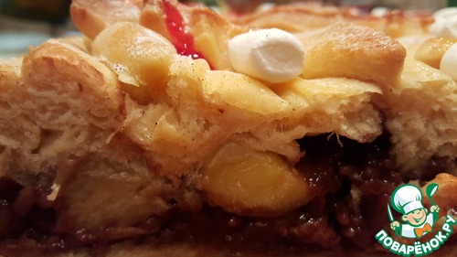 | Пирог с фруктами, шоколадом и рисом... детям понравился - они у меня главные эксперты. Почему-то пока готовила на языке вертелось - Только ёлки в треугольных платьях... Вот захотелось их слегка одеть))) |