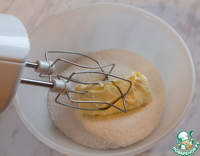 Взбить масло с сахаром до лёгкой воздушной массы.