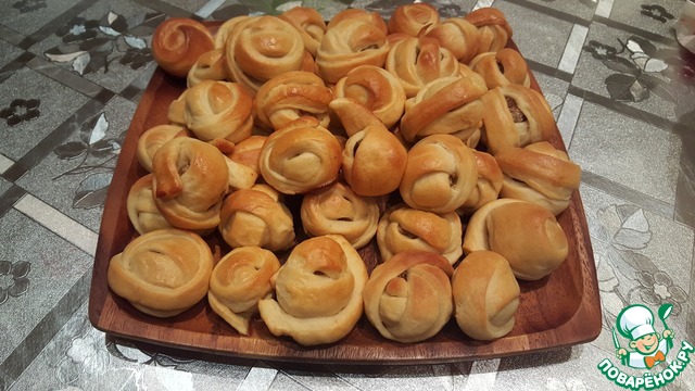 | Аппетитные, ароматные и очень вкусные булочки клубочки. Оригинально будут смотреться и на новогоднем столе и в любой другой день, но... недолго. (два противеня хватило на 30 минут) |