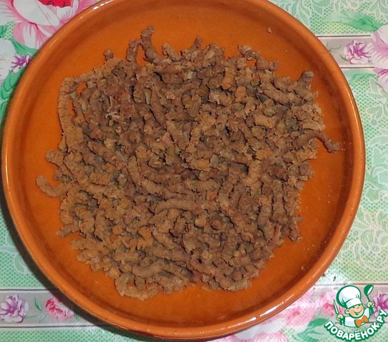 Гусиную печень и куриные желудки пропустить через мясорубку.
