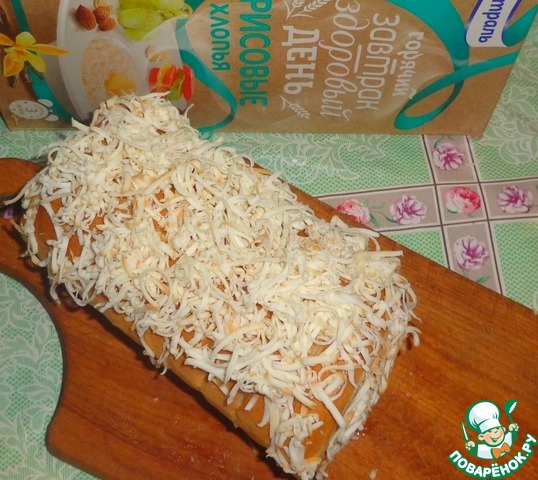 И посыпать сверху колбасным сыром, чтобы багета не было заметно.