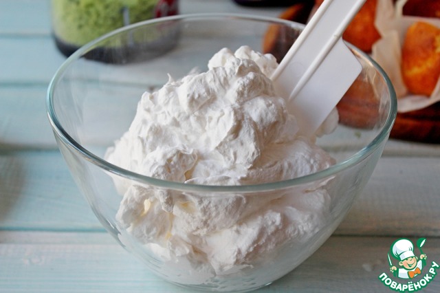 Для приготовления крема, взбить сливки с сахаром мелким Мистраль до пиков, добавить творожной сыр и снова взбить.