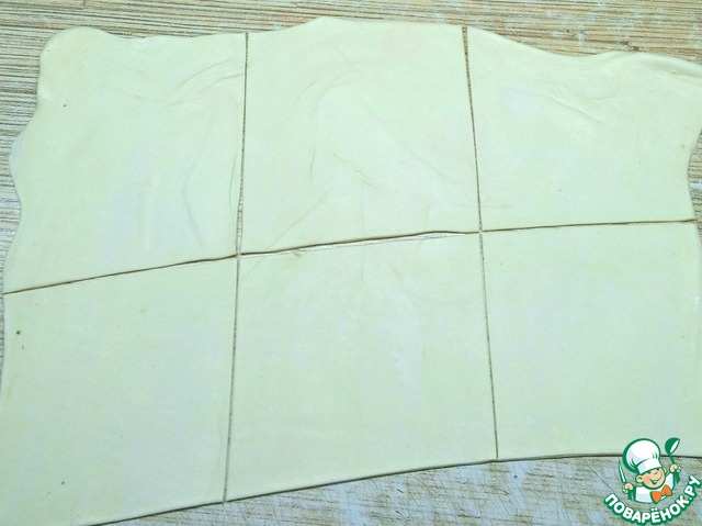 Тесто раскатываем, режем на квадраты. Я что-то криво порезала. :)