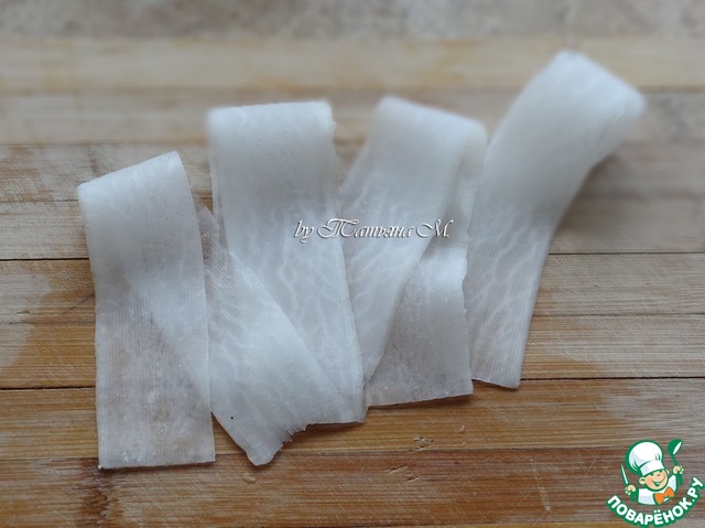 От дайкона отрезать несколько слайсов для "шубки";