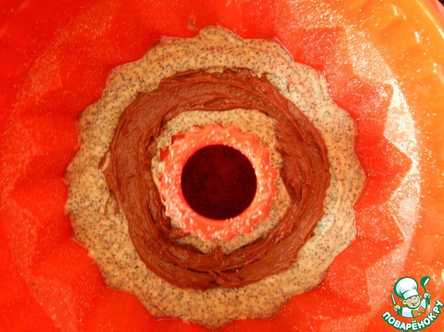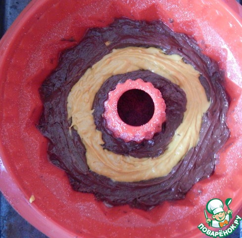 Делаем в тесте углубление и выкладываем в углубление часть теста с какао, а потом выкладываем остальную часть теста и разравниваем слой