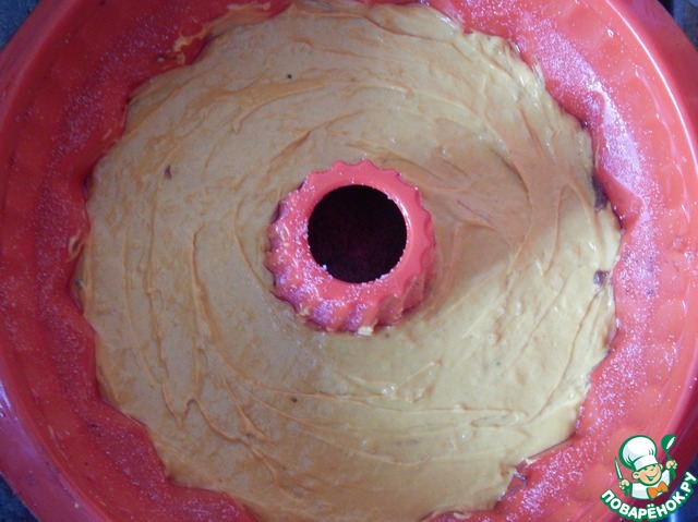 Выпекаем кекс в духовке при 180 градусов в течении 45-50 минут (готовность проверьте зубочисткой)