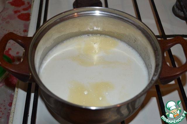 Добавьте молоко, поставьте на огонь. Помешивая, доведите до кипения.