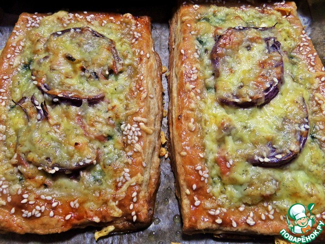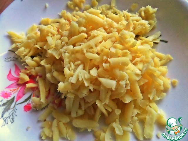 Ставим в духовку на 180*, немного запекаем, потом вынимаем, присыпаем тёртым сыром и отправляем допекаться до румяной корочки.