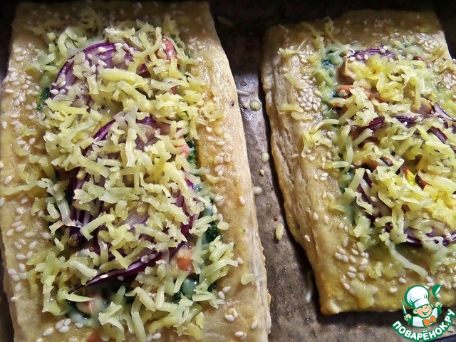 Посыпаем кунжутом. Ставим в духовку минут на 5.