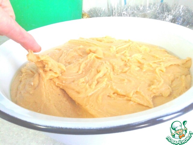 Добавляем оставшуюся муку и замешиваем тесто. Предупреждаю вас, дорогие мои, тесто липкое, плохо поддающееся вымешиванию. Оно напоминает перегретый пластелин. Но! Мы его заворачиваем в плёнку или кулёк и кладём в холодильник минимум на сутки. Если вам будут давать совет положить на один час, то даю честное слово, что 1 - вы с тестом намучаетесь ; 2 - изделие будет жёстким. Самое лучшее тесто получается после двух месяцев выдержки.