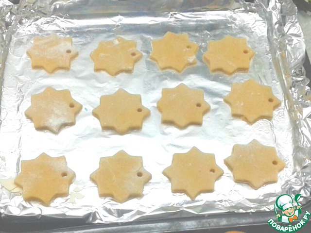 Теста много. Можно испечь просто прянички. Я люблю вешать пряники на ёлку и делаю в них коктейльной соломкой дырочки. Тесто раскатываю толщиной 5 мм и выпекаю 10 мин при t 180'.