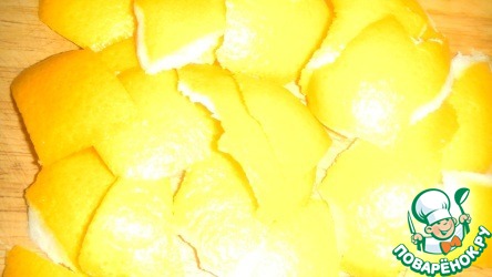 Апельсин моем, очищаем от кожуры. Кожуру нарезаем произвольно.