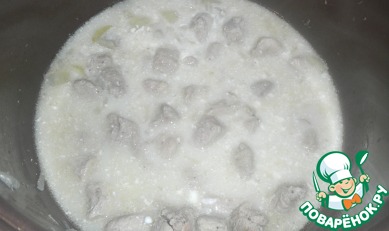 Размягченные корки убираем и добавляем 2 ст. л. сметаны и тушим до готовности мяса.