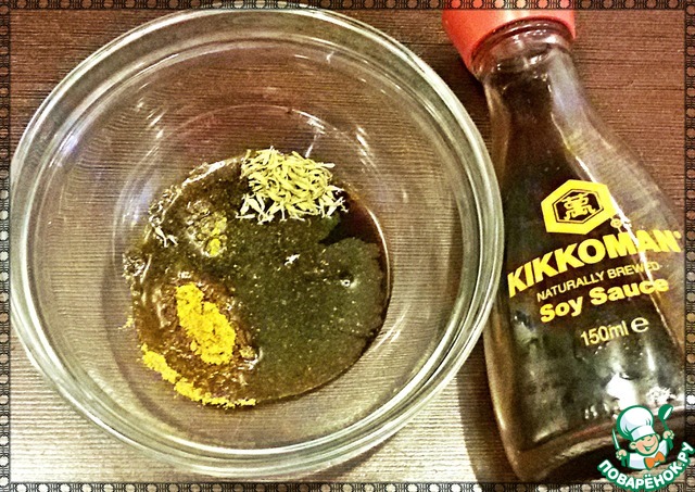 В емкости соединить соевый соут ТМ Kikkoman и все специи. Хорошо перемешать.
