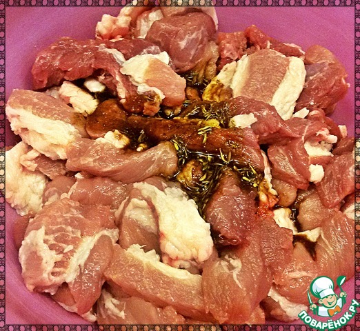 Мясо соединить с маринадом, перемешать, накрыть крышкой и оставить мариноваться минимум на 1 час.
