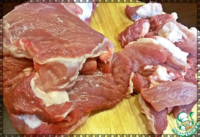 Свинину обмыть и порезать не большими кусочками.