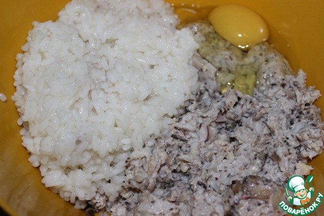 Вот такая масса у нас получилась (если масса получилась жидковатой, можно добавить немного панировочных сухарей и перемешать). Формируем котлетки и обваливаем в панировке (мука+панировочные сухари). В сковороду наливаем немного растительного масла, выкладываем котлетки и жарим до слабого золотистого цвета с двух сторон без крышки. Потом снова переворачиваем котлеты и накрываем крышкой. Жарим до золотистой корочки с двух сторон (всего получается перевернуть котлеты по два раза с каждой стороны).