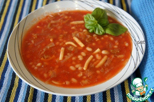 Фасоль заранее замочить в воде на 4-5 часов, затем воду слить, фасоль залить свежей водой и отварить почти до готовности.